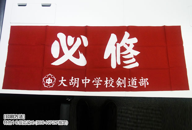 生地の中から染める本格的な仕上がりの反応染めは、会社や学校などの創立・周年記念をはじめ、長寿を祝う手ぬぐいにも適します。染料を使った印刷なので、汗をかくスポーツ応援や運動行事などでも快適な肌触りでお使い頂けます。